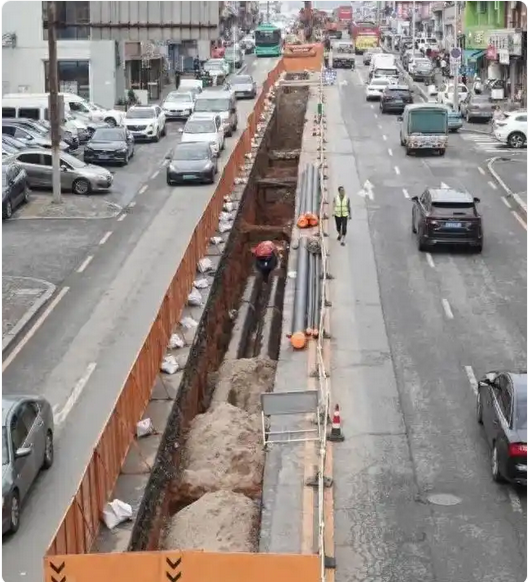 在甘井子区千山路,施工人员正挖开路面铺设直径500毫米的供热管线。改造的供热管线全长3公里,东起纬三街,沿千山路一直向西穿过华东路和山东路,将为千山路和天河路周边121万平方米供热区域提供热源。