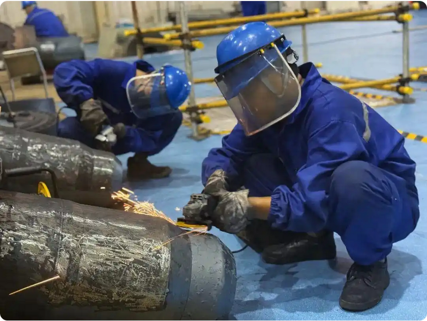 参修人员进行汽门打磨。