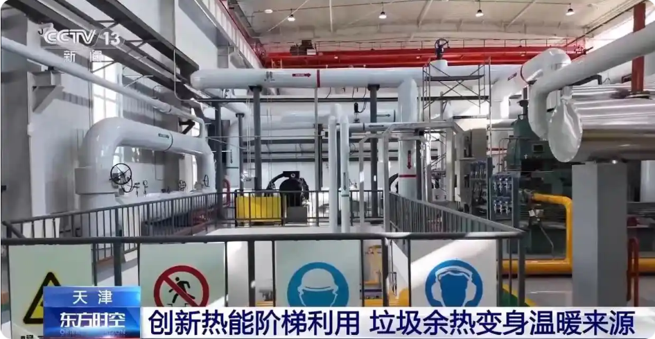 在天津市东丽区一家垃圾焚烧发电厂,炉膛内的火焰温度稳定在927℃左右,为了将垃圾焚烧发电后的大量中低温余热转化为可供暖的热能,当地采用了创新的热能梯级利用技术。