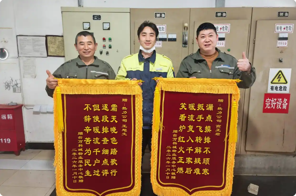 在一次寒潮来袭的关键时刻,他在网格入户走访中了解到,滨海假日花园有一对年过七旬的老两口行动不便,家中暖气效果也不理想。得知情况后,他立刻组织人员上门,不仅仔细清洗了住户室内的过滤器与供暖管路,还主动将排查范围扩大到整个单元的供热系统,彻底解决了供暖问题,让老人家中的室温恢复到舒适状态。这份贴心周到的服务,让老两口感动不已,特意送来锦旗表达谢意。这只是他日常供热服务的一个缩影。在 2024-2025采暖季,他带领的万科班组累计收获锦旗12面、表扬工单35份。凭借着这份“知民忧、解民困”的主动服务精神,他个人走访的600余户居民满意率稳居公司前列,真正让网格化供暖服务落地生根、开花结果。