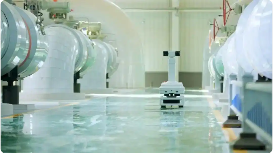 冬末清晨,济南黄河以北,占地3.6万平方米的“聊热入济”北线B4泵站内,一片静谧。没有穿梭的运维工,没有嘈杂的对讲机呼叫声,取而代之的,是沿着固定路线行驶的地面机器人,与正在6米高空中轨道上“漫步”的空中巡检机器人——它们的“眼睛”正仔细扫描着每一台泵机、每一条管道。